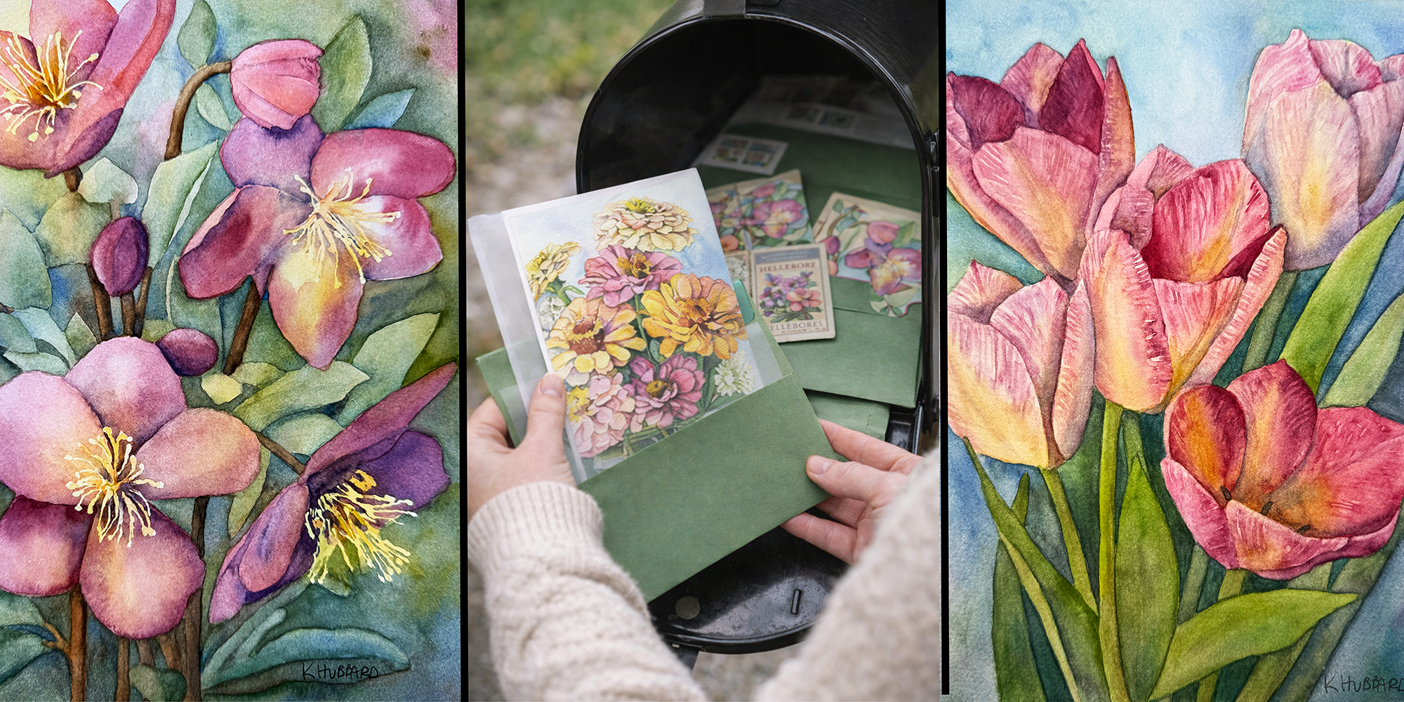 Each month, a hand-painted floral print arrives in your mailbox —